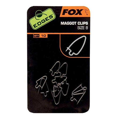 Клипсы для опарыша FOX Edges Maggot Clips часто используется с волосяной оснасткой. На нее нанизывают несколько опарышей, также возможна их комбинация с другими насадками или поп-ап бойлом, пенопластовым шариком, что делает оснастку плавающей. Выполнены клипсы из антибликовой стали. Производятся в трех размерах.