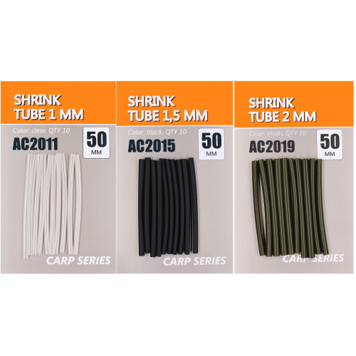 Трубка термоусадка Orange Shrink tube применяется для защиты узла, а также для варьирования угла наклона крючка. Усадку лучше производить опусканием в кипящую воду, открытым огнем можно испортить поводочный материал, лески, плетенки и другие материалы. Доступна в трех цветах и трех размерах. В упаковке 10 штук по 5 сантиметров.