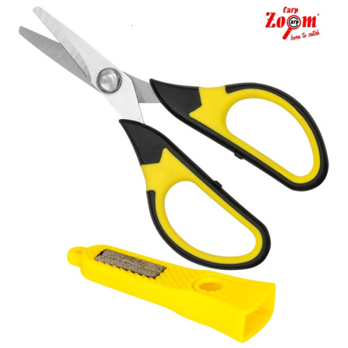 Ножницы CZ2880 Handy Scissors отличаются небольшим размером и специальным лезвием для разрезания плетеных шнуров или лески. На ножнах отверстие для крепления ретривера и алмазная точилка для крючков.