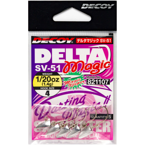 Джигголовка Decoy Delta Magic SV-51 використовується для ривкової джигової проводки. Особлива система кріплення приманки не дасть сковзнути їй навіть на сильній течії. Як насадки найкраще використовувати силіконові приманки.