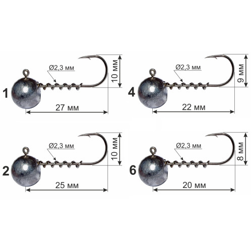 Огрузка джигголовки изготовлена из свинца, кованный крючок выполнен из высокоуглеродистой бельгийской стали и анодирован покрытием Black Chrome, жало крючка заточено по технологии Cutting Ponit, которая обеспечивает наивысшую степень проникновения крючка в жесткий клюв хищных рыб, ножка крючка оснащена спиральным металичесским холдером для надежной фиксации силиконовых приманок, холдер препятствует "сползанию" приманки обеспечивая тем самым лучшую анимацию и привлекательность для хищника. Поставляется по 3 штуки.