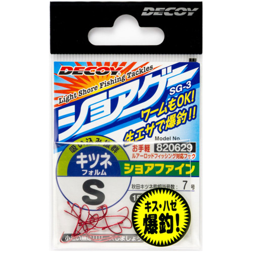 Гачок Decoy SG-3 застосовується для оснащення силіконових приманок, які не сповзають завдяки зазубрині на цівці, також він підходить для оснащення оснасток із бомбардами на живих черв'яках. Його можна використовувати в джигових оснастках з вухатим грузилом. Не боїться солоної води, часто використовується для лову ставриди та саргану у Чорному морі.