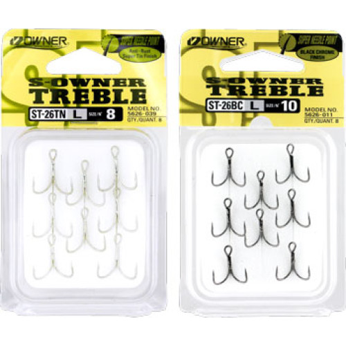 Трійники OWNER ST-26BC виготовлені з тонкого дроту, чудово тримають заточення та не бояться солоної води. Призначені для оснащення пількерів, невеликих блешень та воблерів.