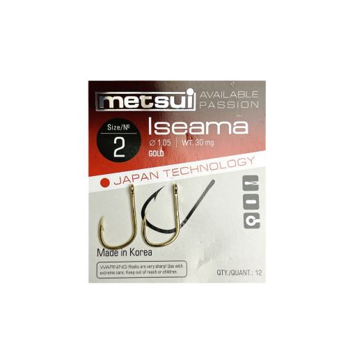Metsui Iseama – очень популярная серия мощных и прочных крючков для ловли крупной, сильной рыбы. Крючки обладают широким округлым загибом, кованным поддевом, загнутым в сторону цевья острым жалом, укороченным цевьем и защитным покрытием. Metsui Iseama хорошо подходят для использования в карповых монтажах, для поплавочной и фидерной ловли.Острое жало гарантирует правильную подсечку и уверенность при вываживании.