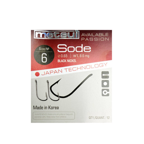 Крючки Metsui Sode — универсальные рыболовные крючки с ушком, которые подойдут для ловли любой мирной рыбы на поплавочные и донные оснастки. Из-за угловатой формы крючка рыба надежно засекается, а тонкая проволока, из которой изготовлен крючок, подойдет для любого вида наживок.