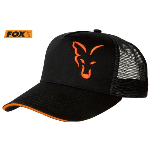 Кепка Fox Collection Trucker Cap Black/Orange, 50% Cotton, 50% Polyester, универсальный регулируемый размер.