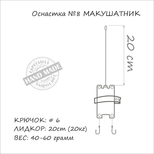 Оснащення "короп" Orange MF-8 "Макушатник" призначене для лову коропа в стоячій воді. Як насадка використовується пресовані кубики макухи соняшника або кукурудзи.
