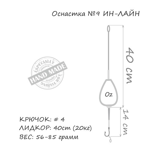 Оснащення "короп" Orange MF-9 "In-Line" 1кр #4 виготовлене з якісного лід-кору, міцного повідального матеріалу, дуже гострого гачка та грушоподібного грузила. Рекомендується застосовувати на водоймах із твердим дном.