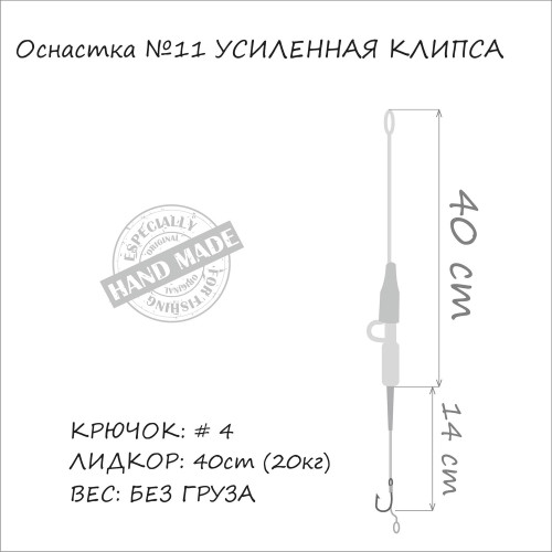 Оснащення "короп" Orange MF-11 MF-39 "Безпечна кліпса" №4 1 гачок застосовується для лову коропів та інших великих риб. Вона виготовлена з якісного лід-кору, міцного поводочного матеріалу, дуже гострого гачка та краплеподібного грузила, що кріпиться на кліпсі. Оснащення не чіпляється за рослинність і корчі на дні і не завдає шкоди рибі.