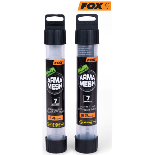Fox Edges Arma Mesh створена для захисту насадки від раків, також для створення альтернативних насадок які важко чи неможливо одягнути на волосся, наприклад хліб, дрібні зернові, креветки, сир, міні-пеллети та інші насадки. У водоймищах, де раки об'їдають навіть плаваючі бойли, без такого захисту насадок не обійтися. Доступні в 14мм та 22мм діаметрах. У комплекті тубус та плунжер, 7м сітки.