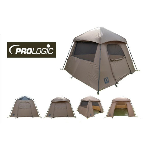 Намет Prologic Firestarter Insta-Zebo виготовлений із двошарового поліестеру, який не пропускає воду та вітер. Напівавтоматичний каркас має невелику вагу, вся конструкція відрізняється легкістю та відмінною стійкістю. Стеля, вікно та вхід оснащені антимоскітною сіткою. Підлога із міцного ПВХ відмінно чиститься у разі забруднення.