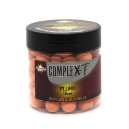 Бойли поп-ап+бустер Dynamite Baits Complex-T Fluro Pop-Ups&Dumbells - це ефективна насадка, до складу входять якісні компоненти, зокрема рибне борошно, м'ясо криля, екстракт водоростей та амінокислоти. Бойли мають яскраве флюорисцентне забарвлення і практично не розпадаються, що дозволяє довго зберегти привабливий вид насадки і використовувати їх дуже економно. Насадка плавуча і може піднятися навіть із важким гачком. У комплекті йде невелика баночка з бустером для покращення ароматичних та смакових якостей принади.