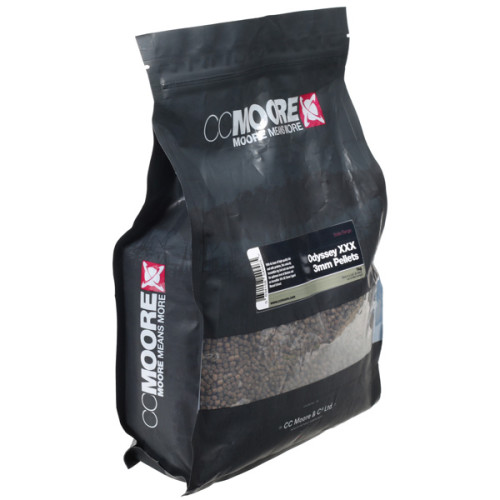 CCMoore Odyssey XXX Pellets – високоякісний пелет, розроблений фахівцями компанії СС More, на основі рибних та рослинних білків, пташиного корму, які покращують смак та апетит у риб. Пелет містить рибні білки, що легко засвоюються, які швидко розчиняються навіть при низьких температурах. Для збільшення харчової цінності та привабливості до складу пеллету було додано екстракт зеленої мідії (GLM).