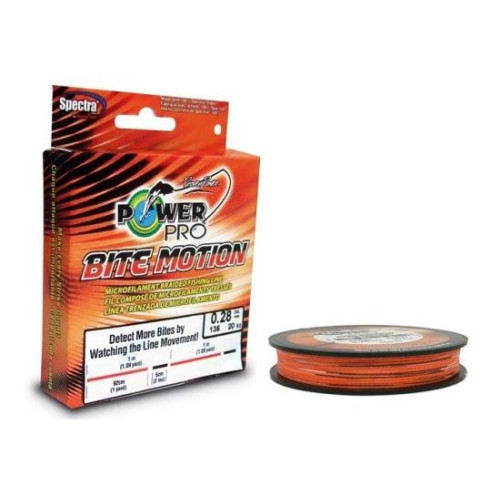 Шнур PowerPro Bite Motion виготовлений з волокон SPECTRA FIBER і має гладку поверхню, що дозволяє рівномірно намотати його на котушку, а також зробити дальнє закидання. Шнур має спеціальне просочення, яке не дає йому вбирати воду, частинки каміння і піску, що подовжує термін служби снастей. Також він абсолютно не має пам'яті, не розтягується та не піддається впливу сонячних променів. Шнур витримує велике навантаження, тому його можна використовувати у екстримальних умовах.