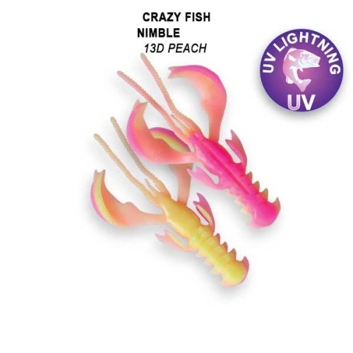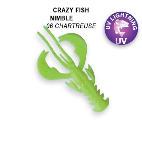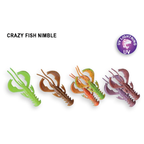 Плавающий силикон Crazy Fish NIMBLE Floating- это ракообразное с активными клешнями, которые заводятся сразу после начала проводки. Приманка имеет стабильную и размашистую игру, не зависимо от способа ловли. Данную приманку можно крепить любыми видами монтажа,использовать двойник или оффсетный крючок, а огружать ее или нет - зависит от условий ловли.