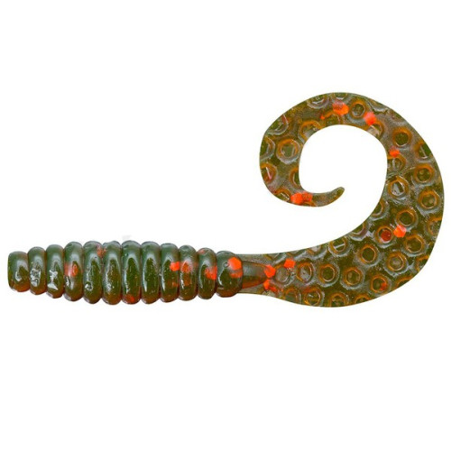 Силикон Select CC-Grub имеет форму твистера с необычным хвостом в мелкую дырочку и загнутым внутрь кончиком. Рифленое тело издает слышные для рыбы колебания, а также активно выпускает аттрактанты и соли, которыми щедро пропитана приманка. Силикон очень гибкий и заводится при малейшем движении вершинкой удилища. Рекомендуется монтировать его на джиг-головку или на шарнирную фиксацию, также у приманки есть выемка для оффсетника.