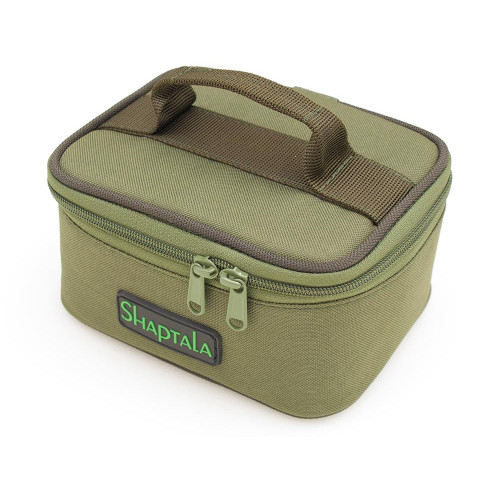 Сумка для хранения и транспортировки грузил, кормушек, снастей. Со всех сторон в стенках сумки вшита пена. Внутри есть усиленные сьемные перегородки, которые делят сумку на четыре части, и за счет чего грузила не перекатываются между собой. Крепления перегородок к стенкам сумки спроэктированы так, чтоб перегородка не отстегивалась под весом грузов при переворачиваниии сумки.