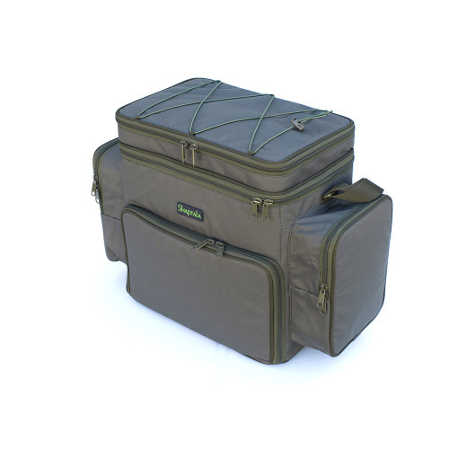 Cумка предназначена для транспортировки и хранения снастей в коробках, катушек.Изготовлена из водонепроницаемой ткани. В стенках вшит уплотнитель. У сумки три отделения. Верхнее 37х25х5см. В крышке сеточный карман. Второе отделение 37х25х12см. Перегородки можно располагать как вам удобно. Также во втором отделение тоже есть сеточный карман. Третье отделение 37х25х21см для коробок. По бокам сумки вместительные карманы 25х18х8см. На всех карманах и отделениях установлена молния с двумя бегунками для удобства пользование. Сверху сумки есть резинка с утяжкой, которой можно фиксировать одежду. На дне использована легко моющаяся ткань и пришиты нескользящие ножки, 5шт. Есть ремень для переноски сумки на плече. Сумку отдельно можно укомплектовать коробками